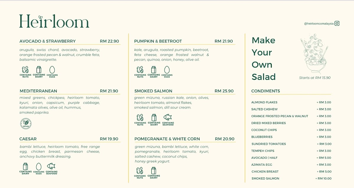 Welcome to The Heirloom & Co, a haven for health-conscious food lovers located at Gurney Paragon Mall, Penang. This vibrant cafe focuses on creating nutritious yet delectable meals that satisfy both the palate and the wellness enthusiast. The menu features a delightful array of options, from the refreshing Avocado & Strawberry Salad to the satisfying Honey Wasabi Salmon Bowl and Miso Beef Grain Bowl, ensuring each dish is loaded with fresh ingredients and bold flavors.